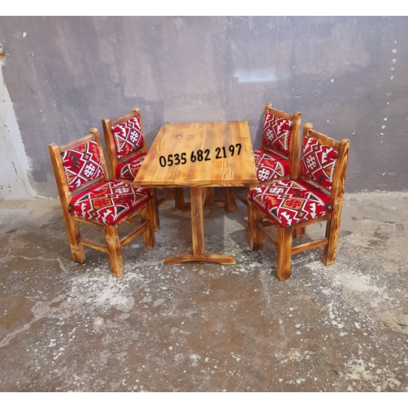 Yakma Ahşap Masa Sandalye